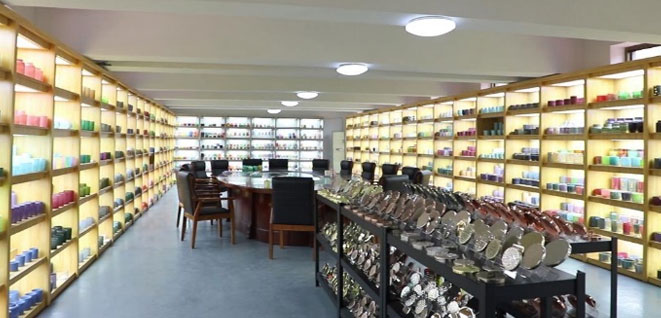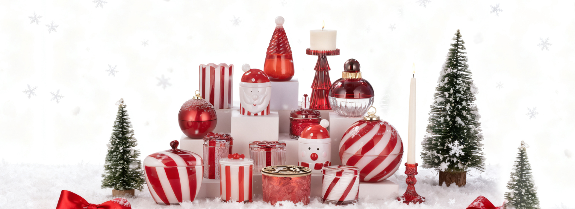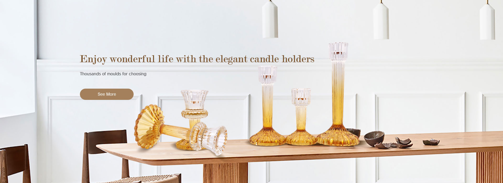 Our main products include glass candle holders, drink wares, candy&food jars, plates&bowls, vases, ashtrays, table displays, home&festival decors and the matched metal accessories.