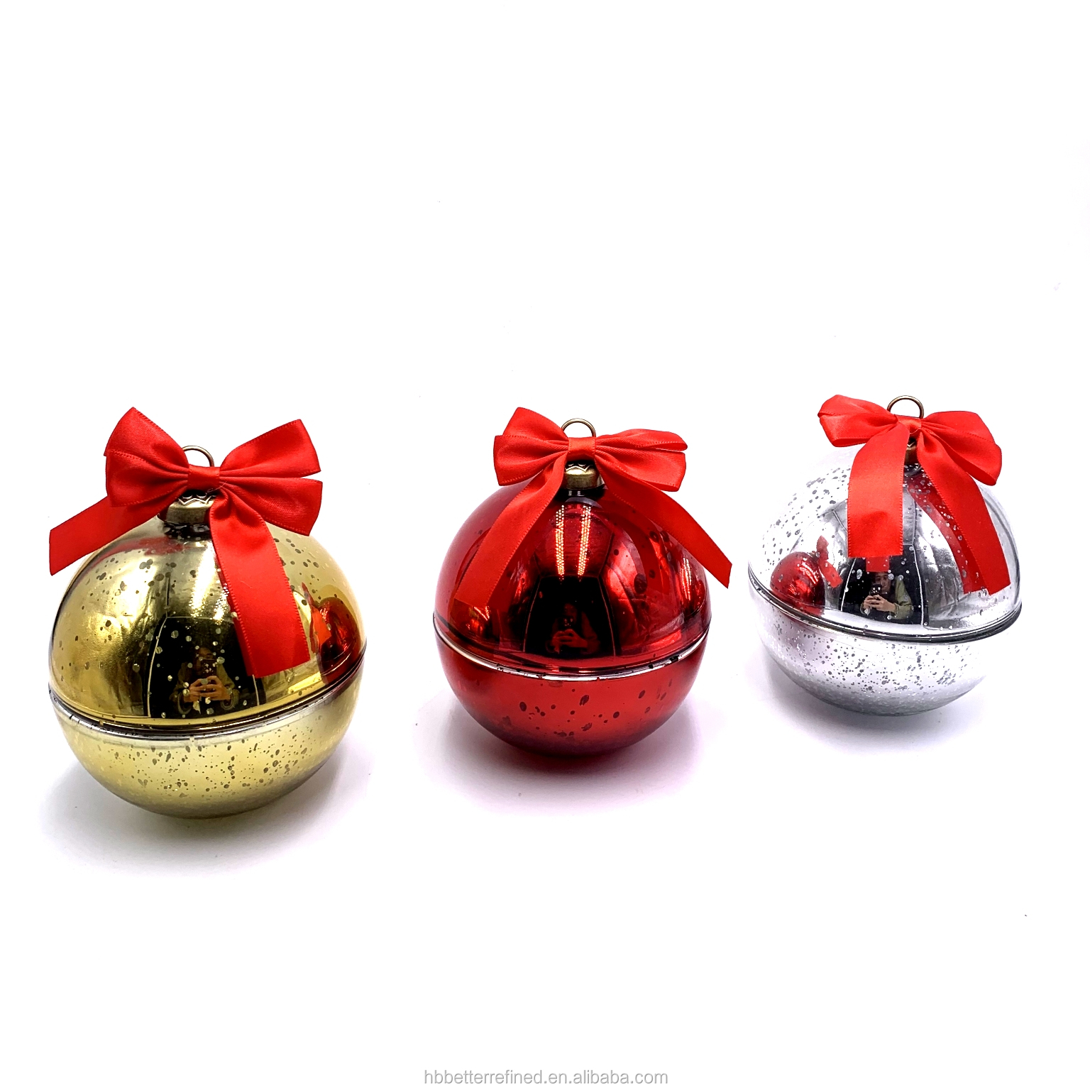 Description | Christmas Ball Shaped Candle Glass Jar With Mercury Finish |