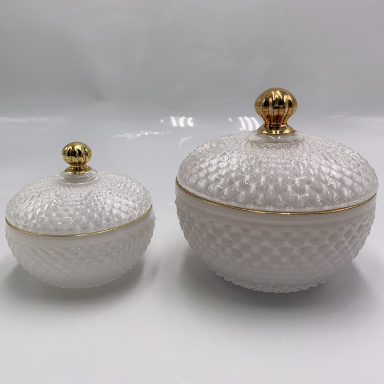 Description | Embossed Effect Empty Crystal Glass Candle Jar |