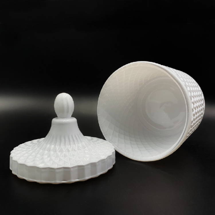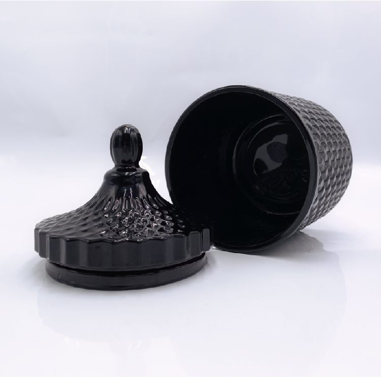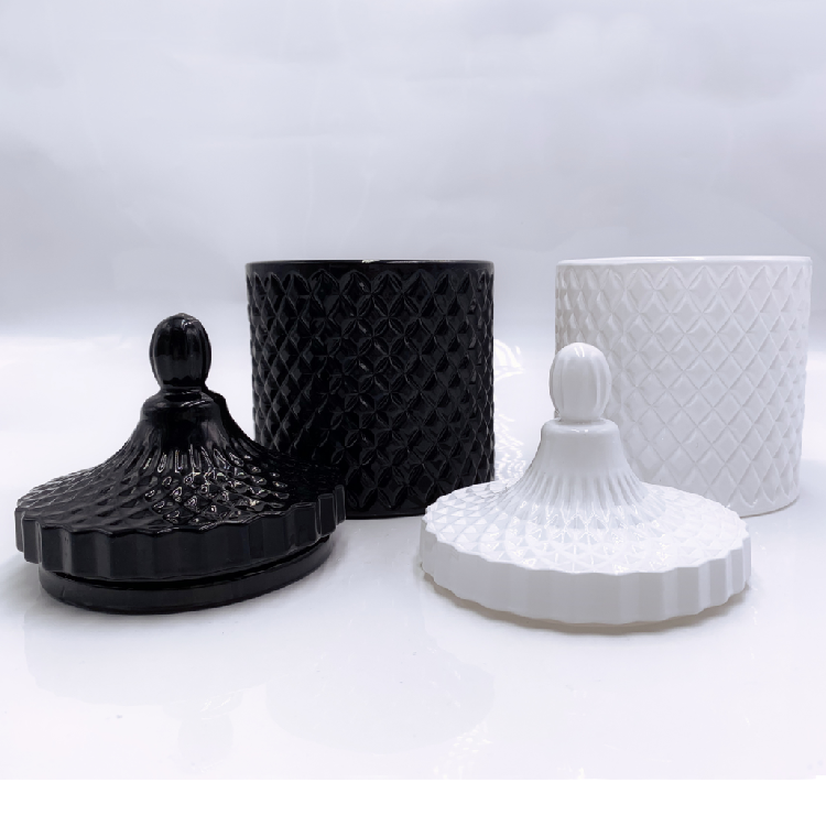 Description | Embossed Effect Black/White Glass Candle Jar With Glass Lid |