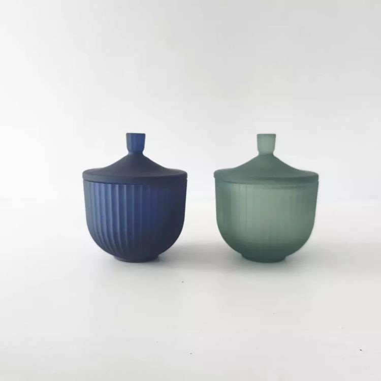 Description | New Arrival Frosted Blue Glass Candle Jar With Lid |