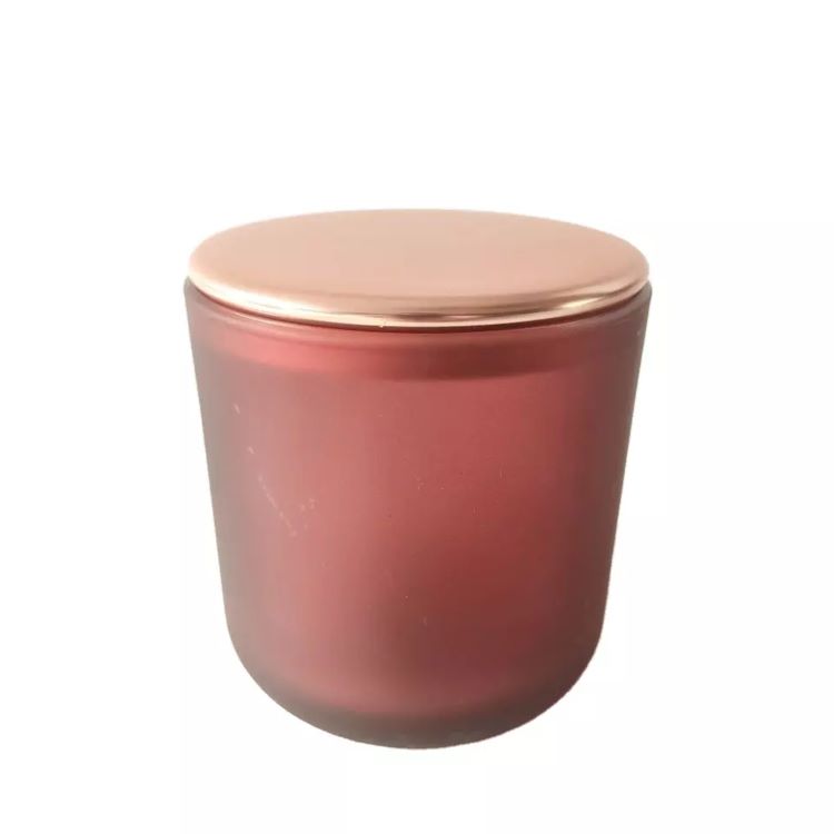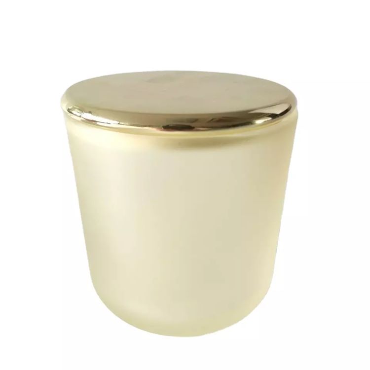 Description | Frosted yellow and brown color glass candle holder with gold and rose gold lid |