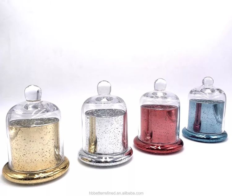 Description | Mercury gold finish cloche shaped glass candle jar dome glass candle holder |