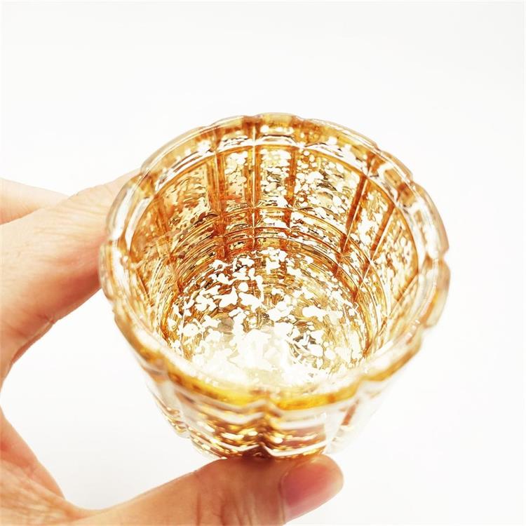 Description | Mercury gold effect tealight candle holder confetti effect glass candle jar |