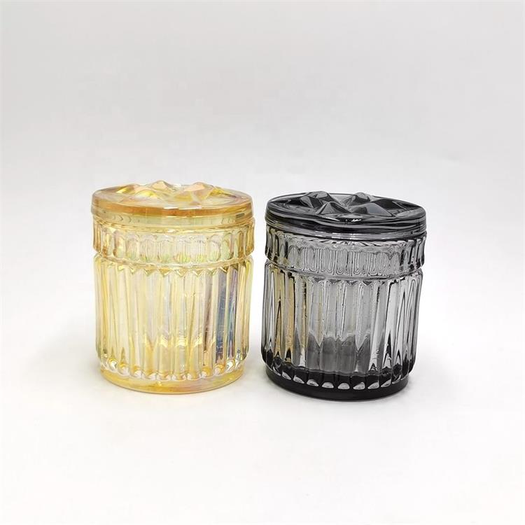 Description | Smoke grey amber Colored Star Design Glass Ribbed Candle Jar Empty Storage sweet Jar For Nuts |