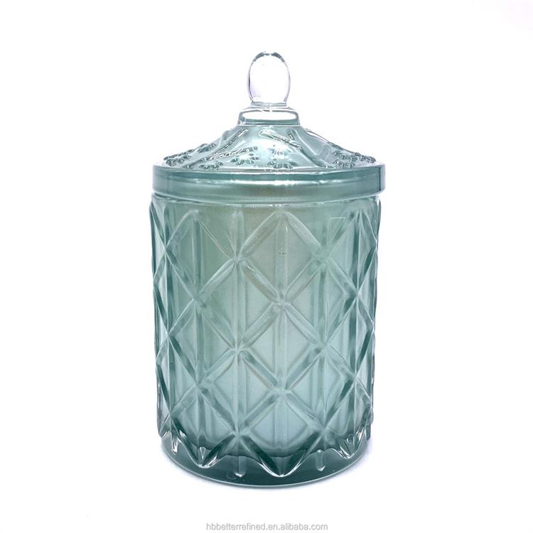 Description | Unique pink purple empty food storage Decorative Multipurpose Antique Design Glass Candy Jar with Lids GEO Cut Glass Candle Jar |