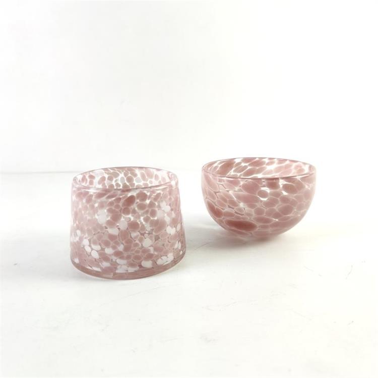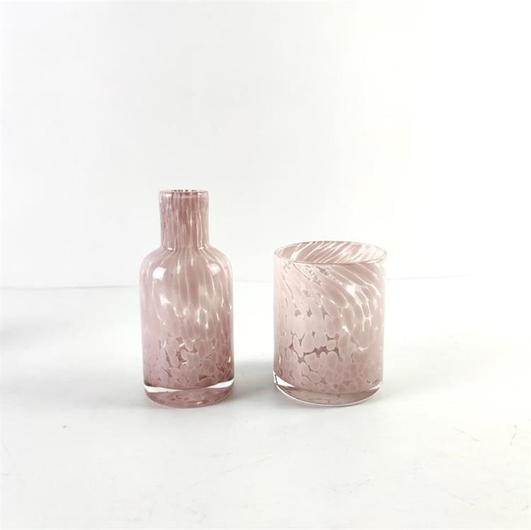 Description | Pink dots inside glass candle holder swirled fashion color candle jar and diffuser |