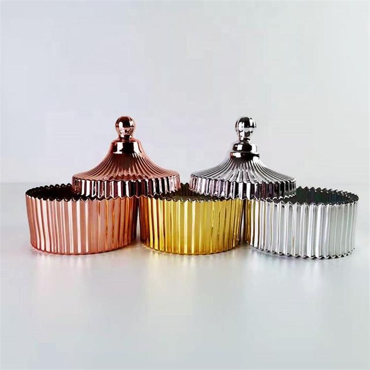 Description | Vertical Pattern Gold silver rose gold Glass Candle Jar |