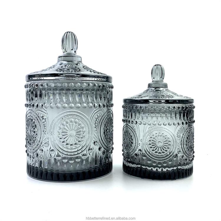 Description | Unique Decorative matte frosted black empty Antique Design Glass Candy Jar with Lids |