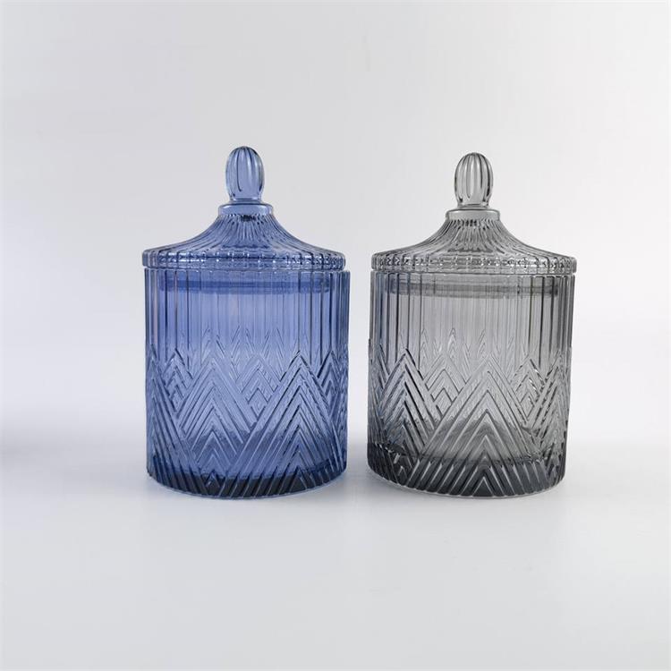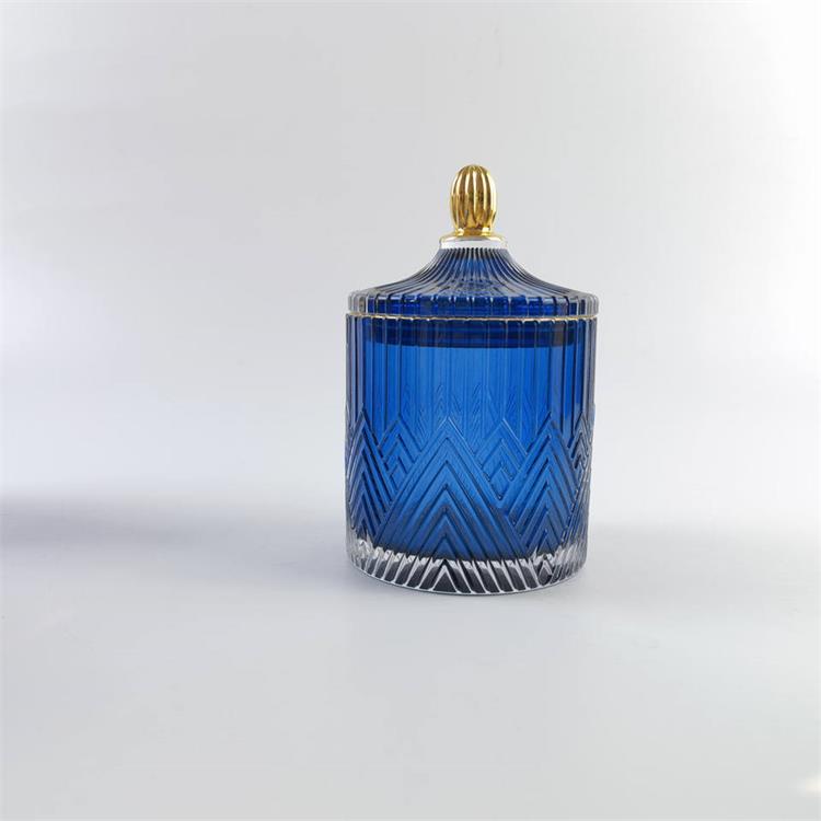 Description | Ocean Blue Ribbed Glass Candle Jars With Gold Rim |