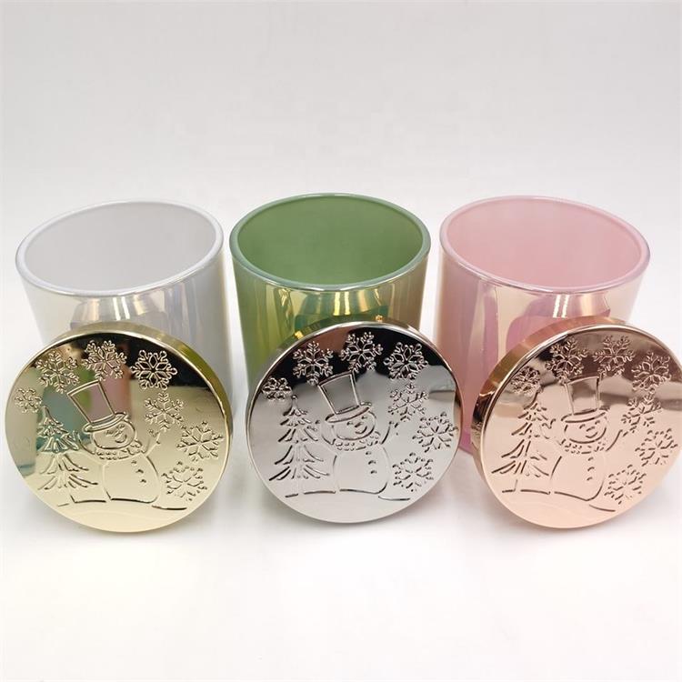 Description | Hot sale glass candle jar with metal lid for scented wax making candle cup snow man pattern christmas |