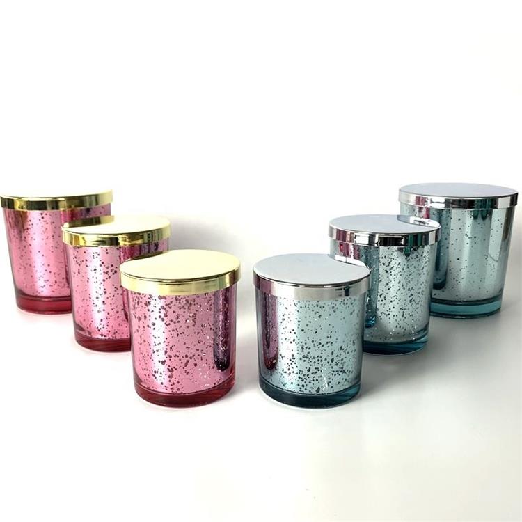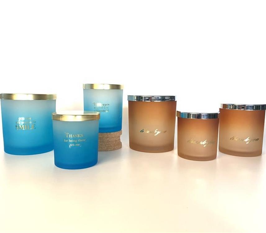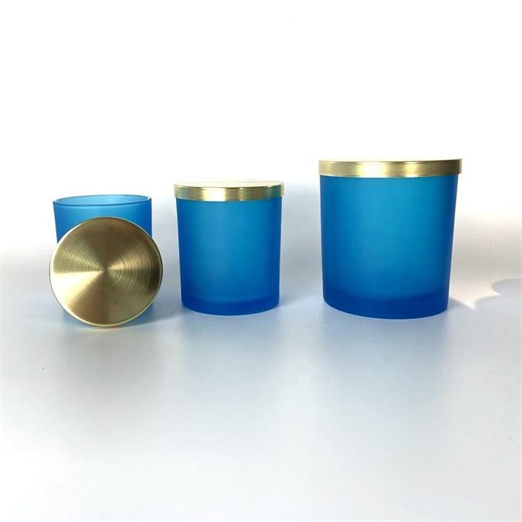 Description | Empty colorful glass candle jar with metal lid for scented candle soy wax making |