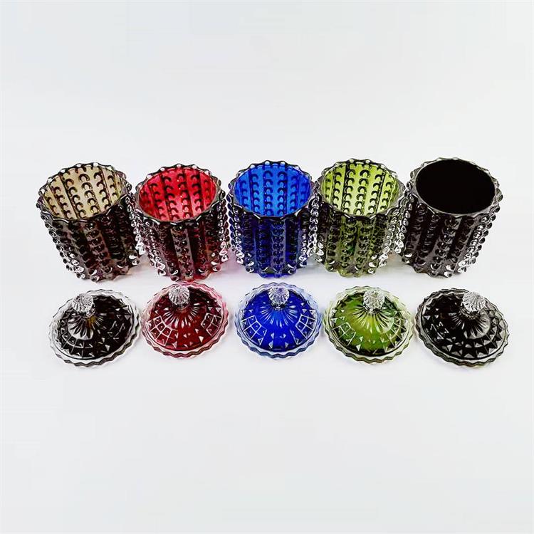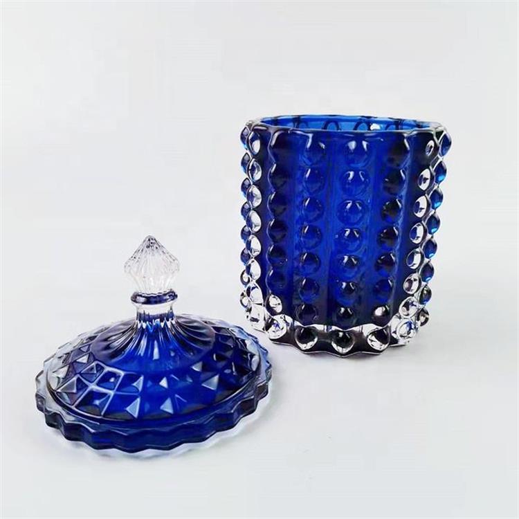 Description | Unique Beaded Crystal Glass Candle Jar with Lid |