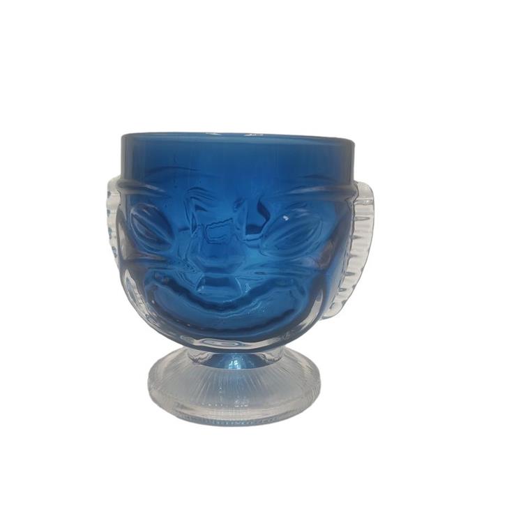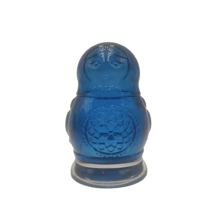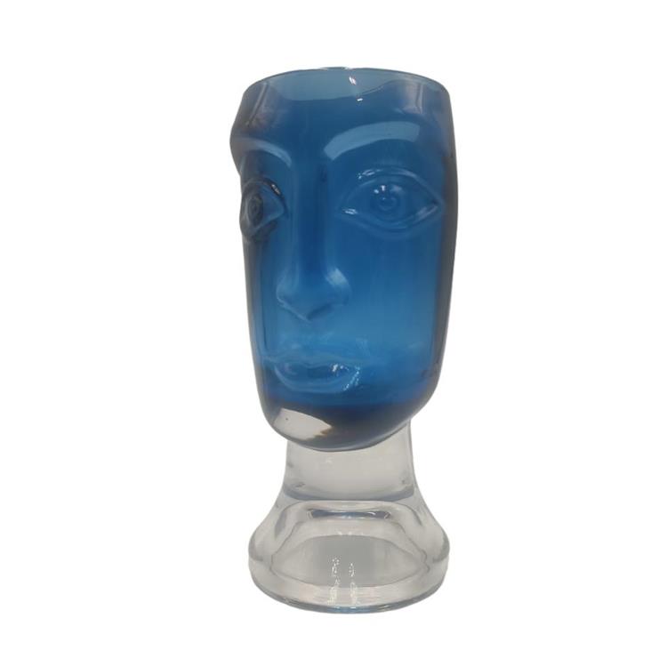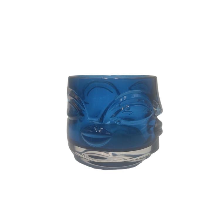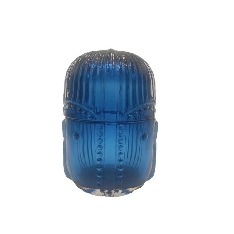 Description | Blue color Buddha head glass candle jar human face candle holder |