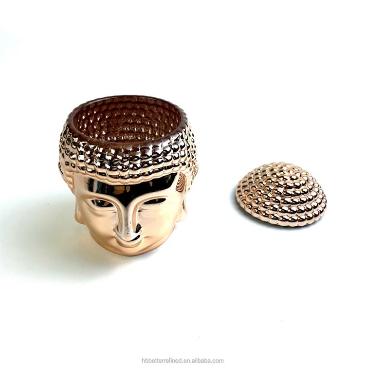 Description | Buddha rose gold silver shiny head glass candle jar with lid crystal glass candy jar hand made luxury cookie jar |
