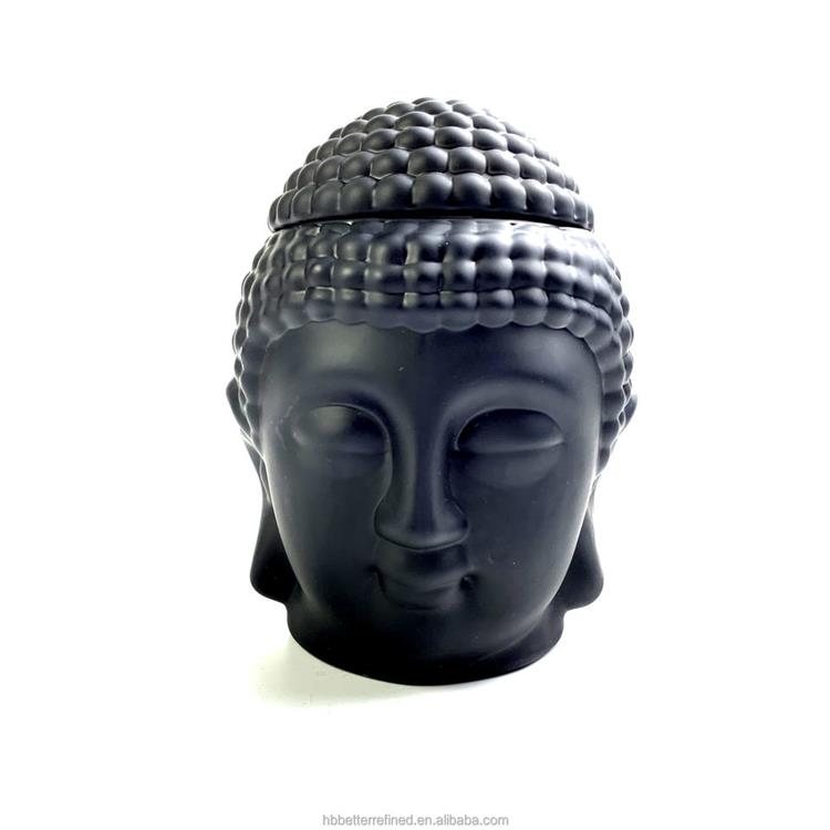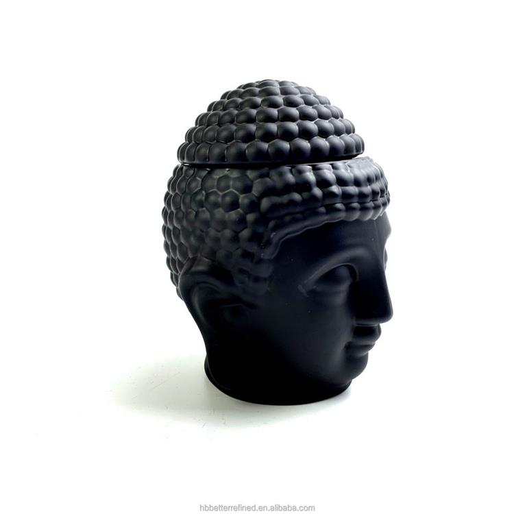 Description | Buddha matte black white frosted head glass candle jar with lid crystal glass candy jar hand made luxury cookie jar |