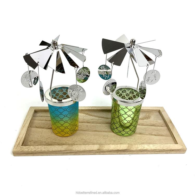 Description | Marry go round rotating mini plat matte frosted carousel glass candle jar hand made luxury cookie jar |