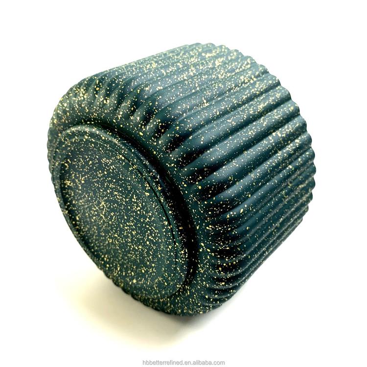 Description | Ribbed Vertical striped 10oz green gold powder glass candle jar hand made luxury cookie jar with wooden lid |