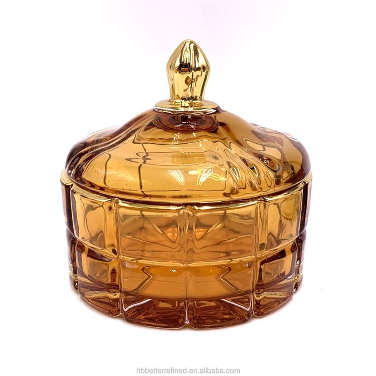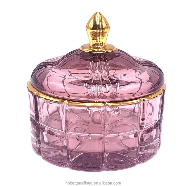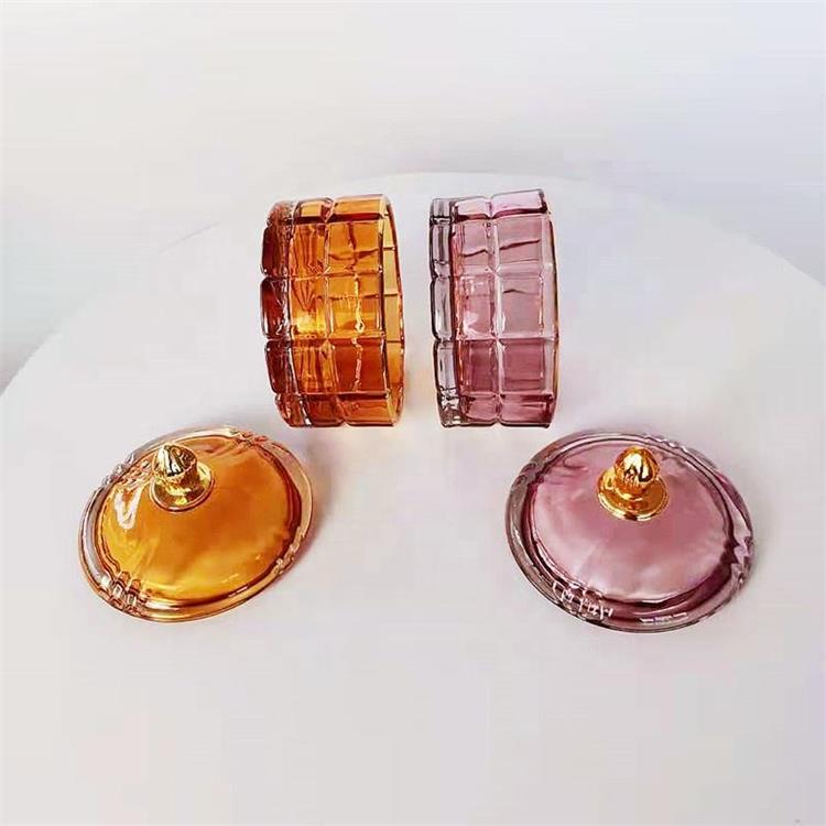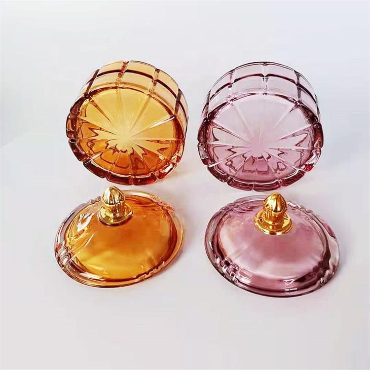 Description | Geo Cut Colored Glass Candy Jar Transparent Crystal Glass Candle Jar with Lid |
