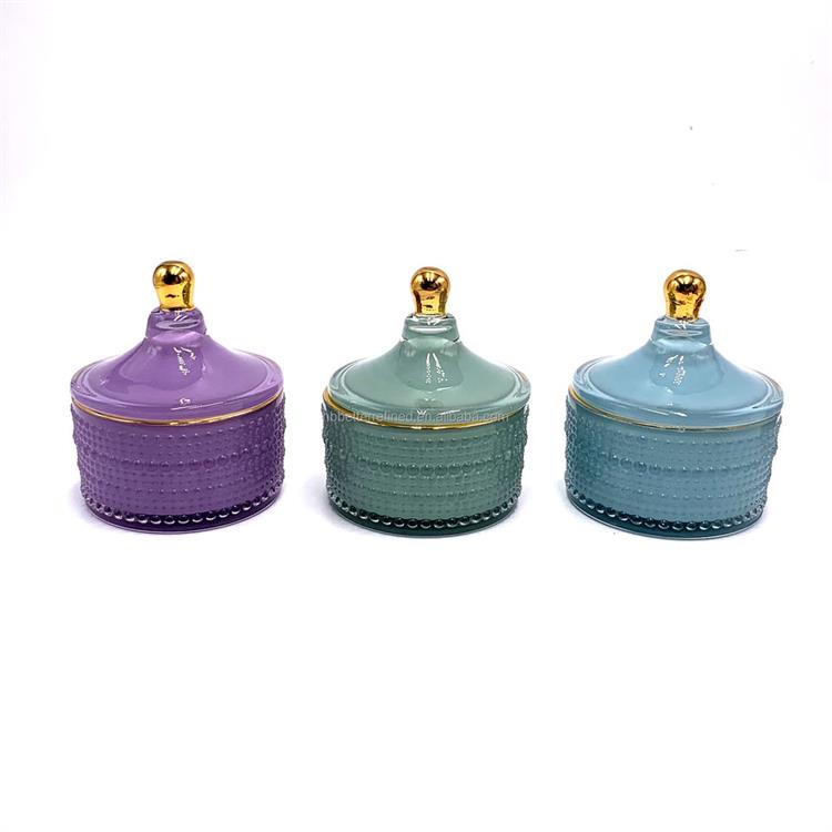 Description | Circle geo cut baby size mini soy wax luxury glass candle jar with lid |