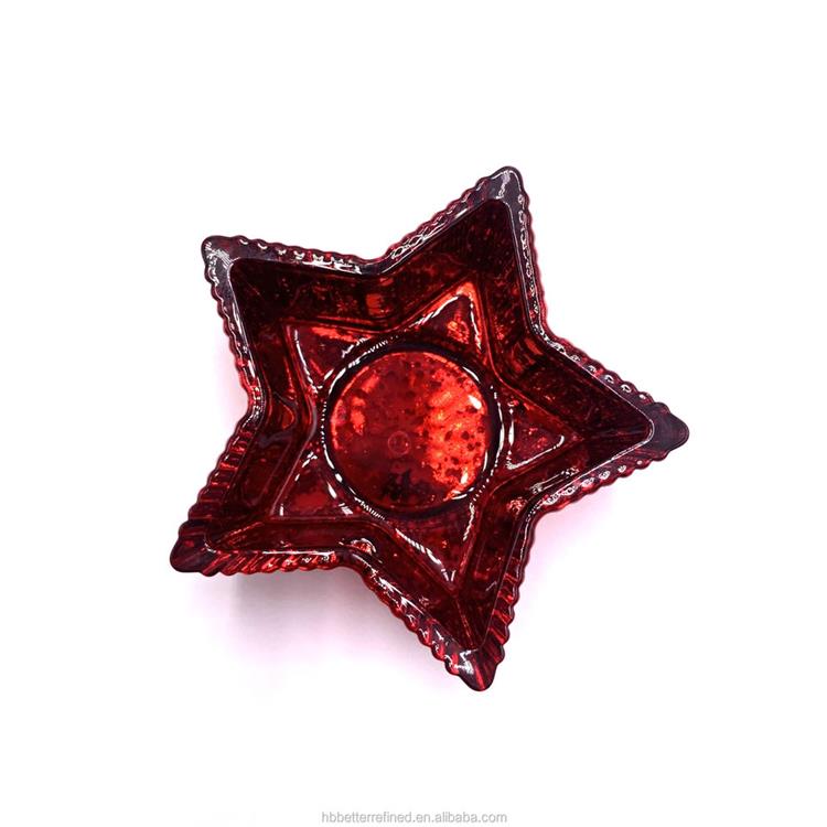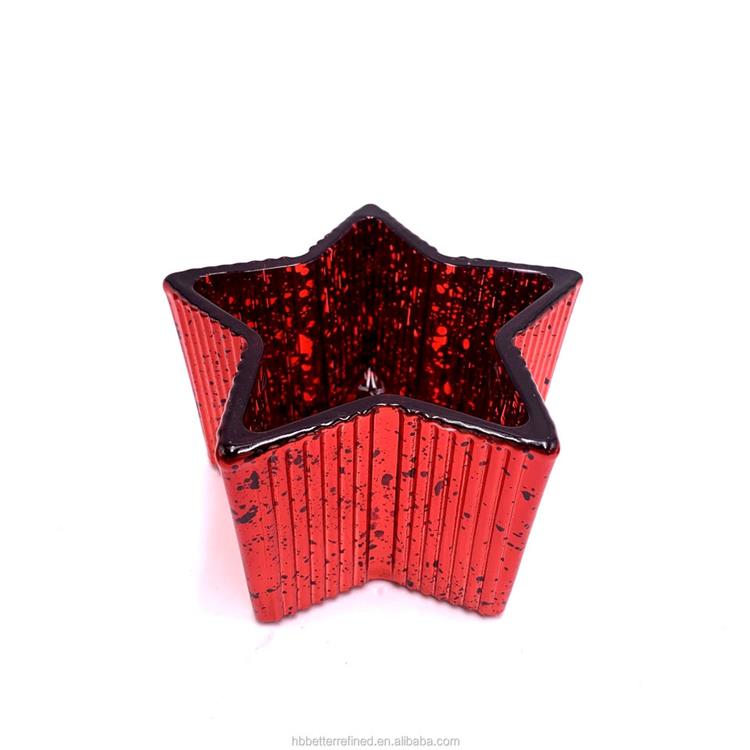 Description | Glass red star ribbed five point pentacle shaped jar for candle making christmas crystal glass candy jar wax container |