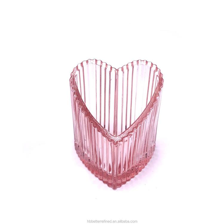 Description | Glass heart ribbed pink valentine day shaped jar for candle making |