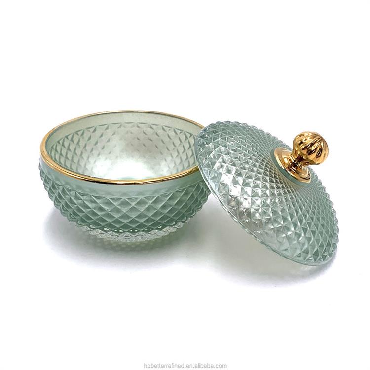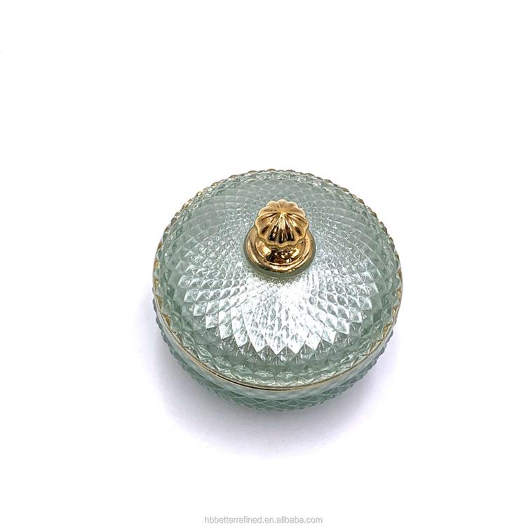 Description | New Glass geo cut peacock light green jar for candle making with glass lid crystal glass candy jar with lid |