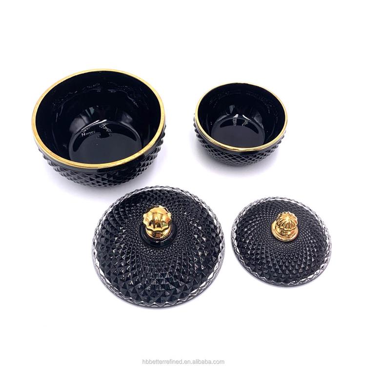 Description | Glass geo cut black retail round citrine jar for candle making with glass lid crystal glass candy jar with lid |