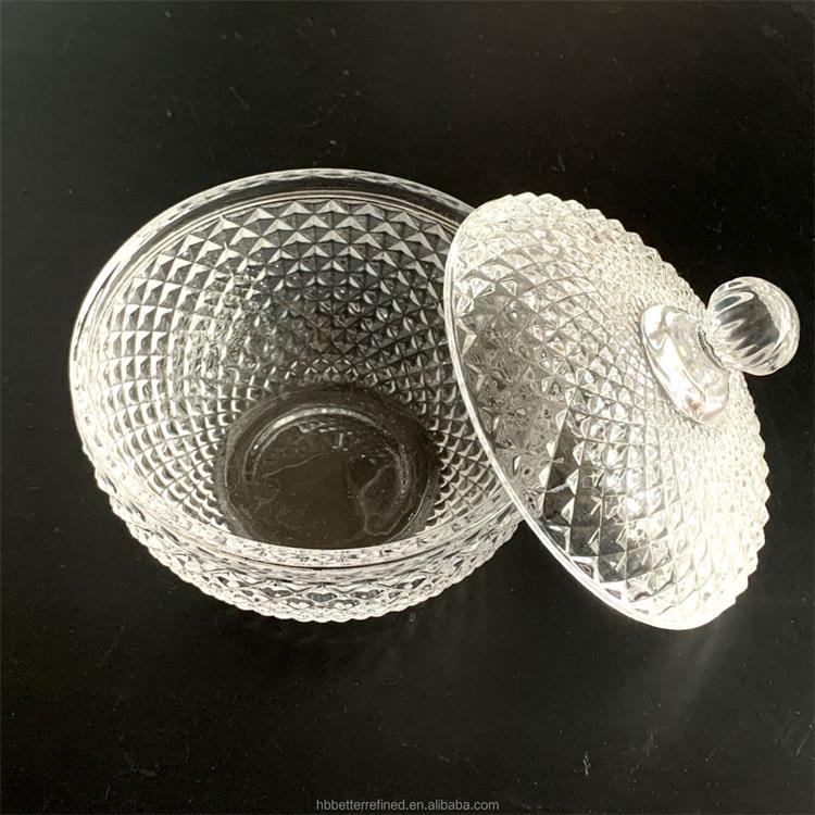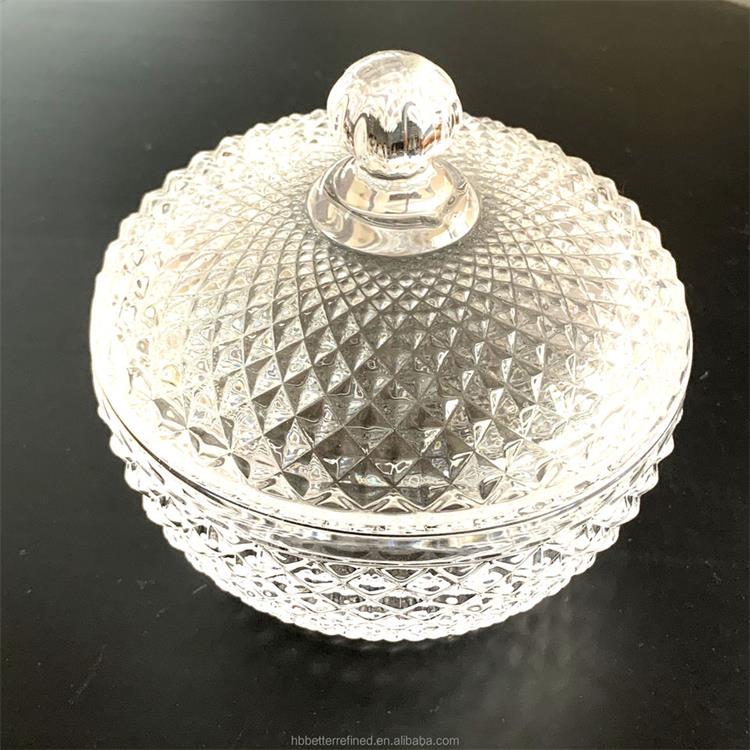 Description | Glass geo cut transparent round citrine jar for candle making with glass lid crystal glass candy jar with lid |