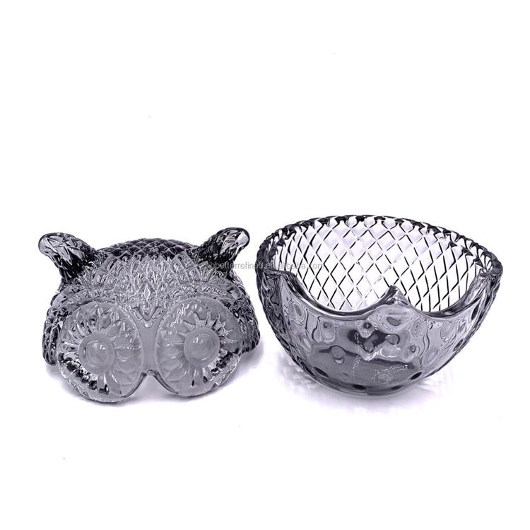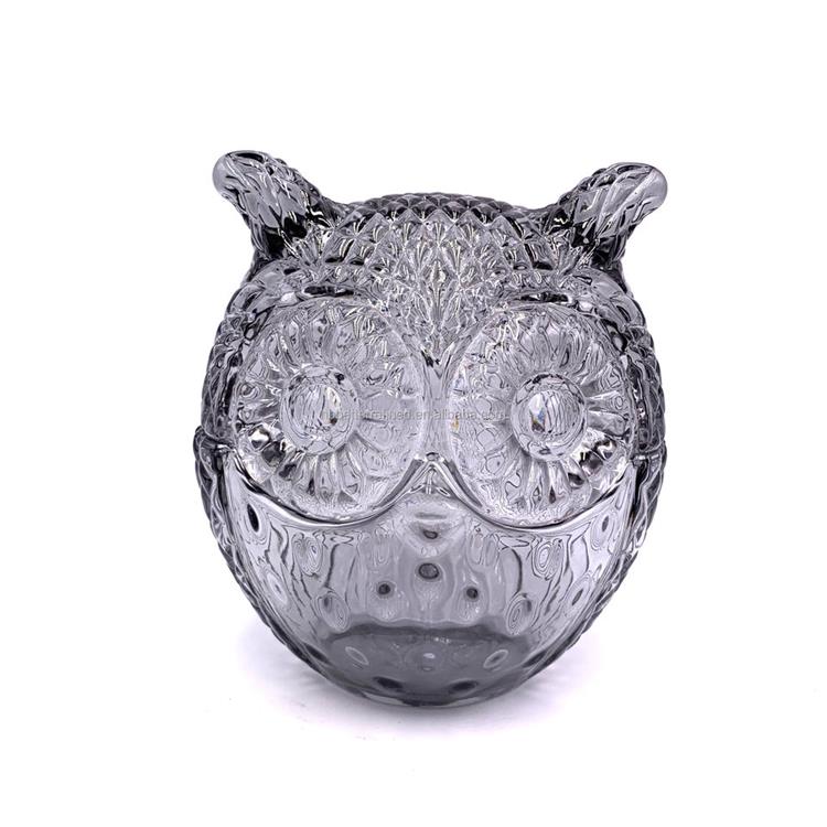 Description | Light mini gift translucent grey owl lead free empty hand made glass candle jar |