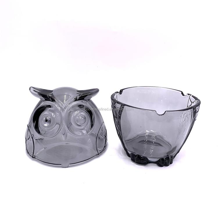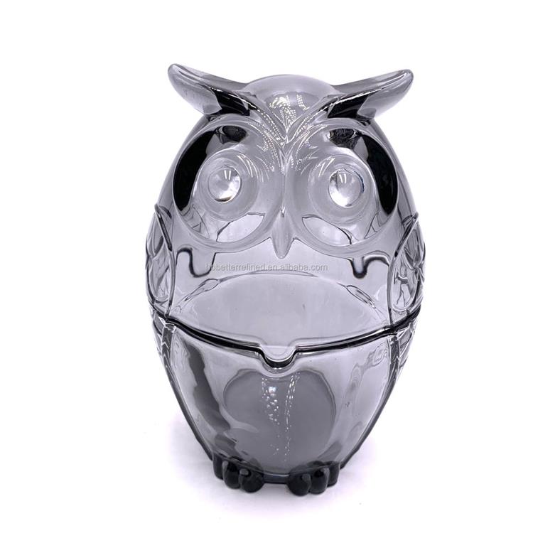 Description | Light translucent grey owl lead free empty hand made glass candle jar |