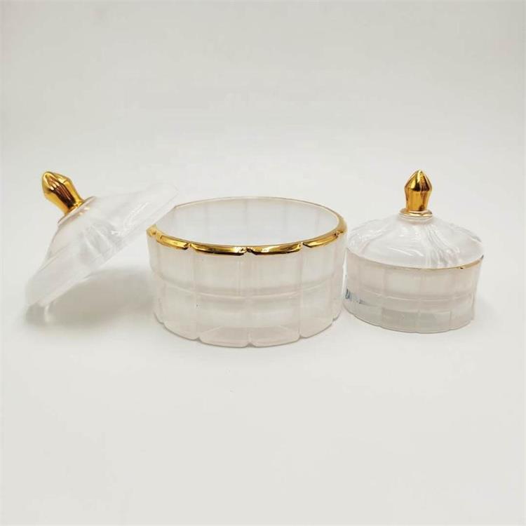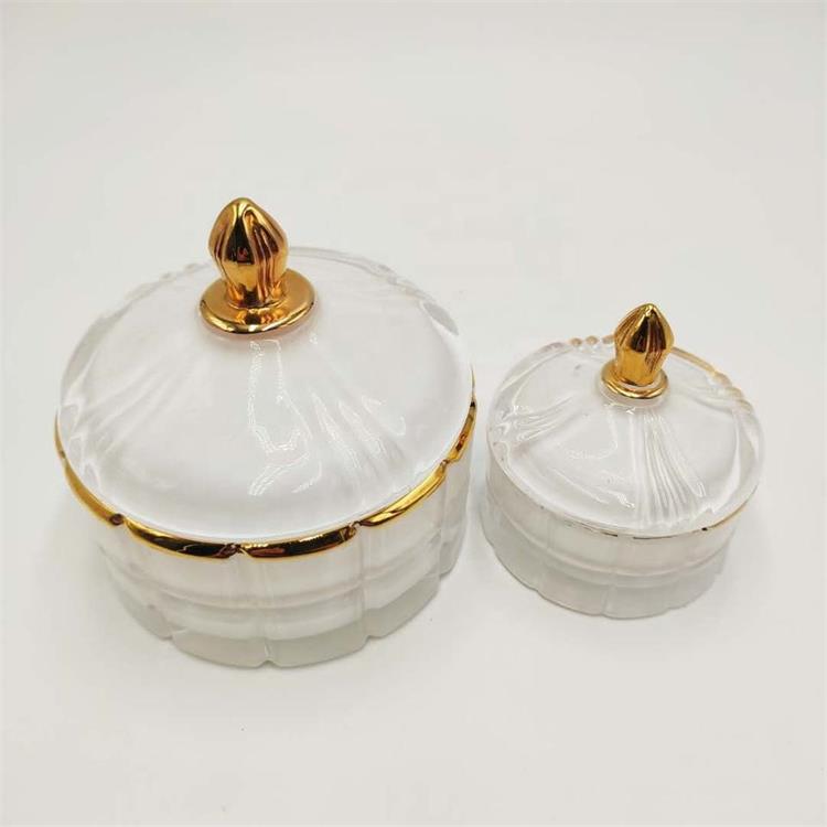Description | White color square lattice pattern glass candle jar with glass lid |