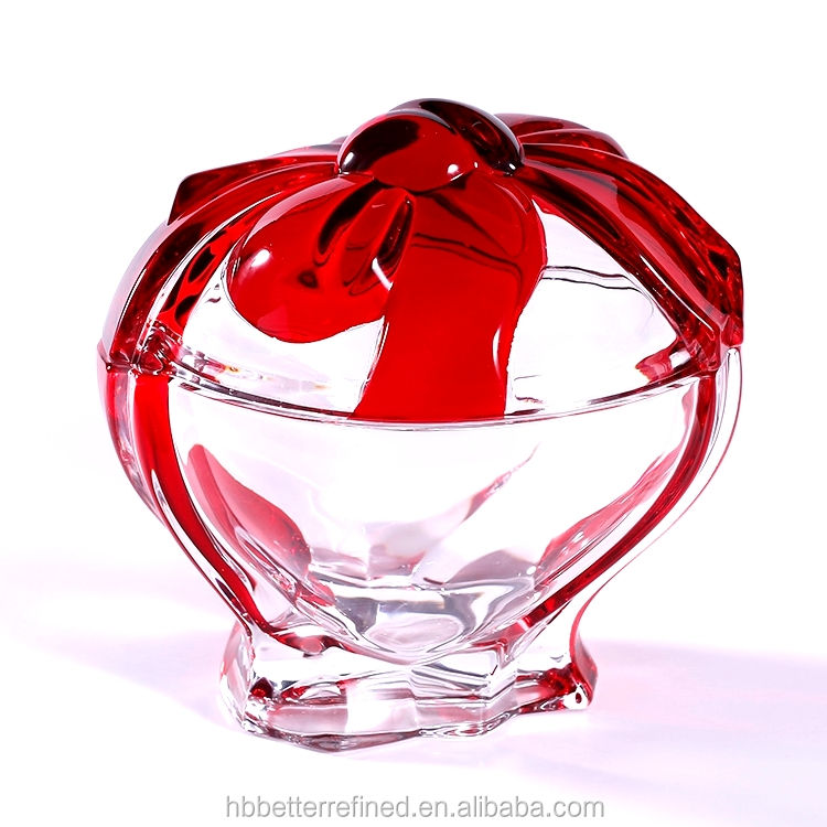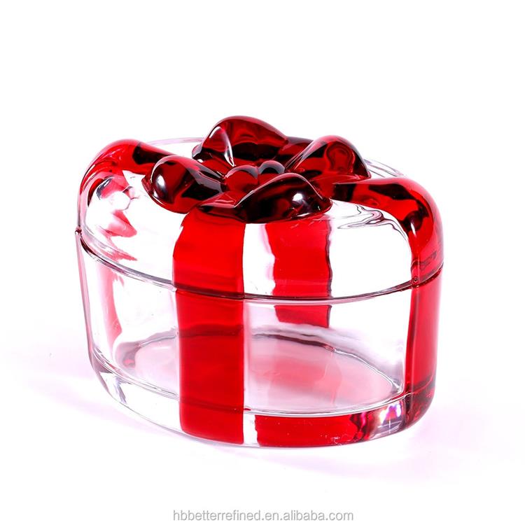 Description | Food storge bowknot elliptical christmas gift glass candle jar with crystal glass butterfly knot jewel box case Multipurpose |