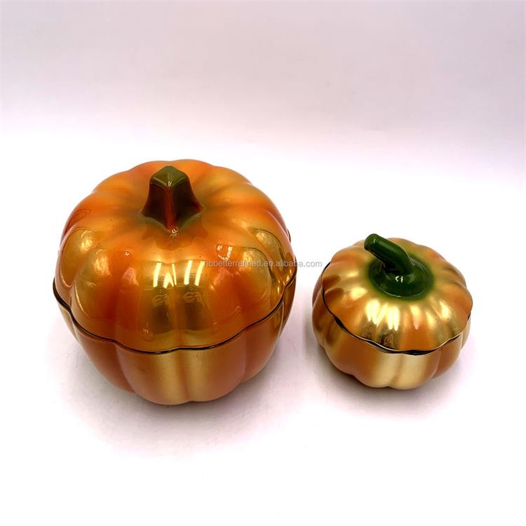 Description | Halloween orange gold pumpkin shaped jar for candle making with glass lid crystal glass candy jar with lid wax container |