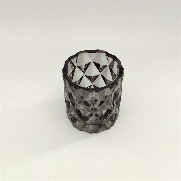 Description | Smoke grey glass candle cup wholesaler glass cut tealight holder |