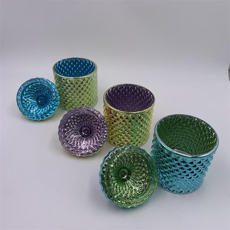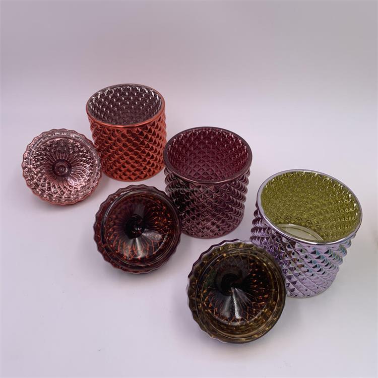 Wholesale circle geo cut multi color luxury glass candle jar with lid glass cookie jar empty wax cup food storage rubber ring