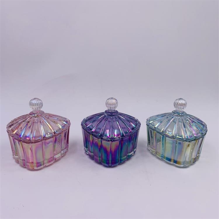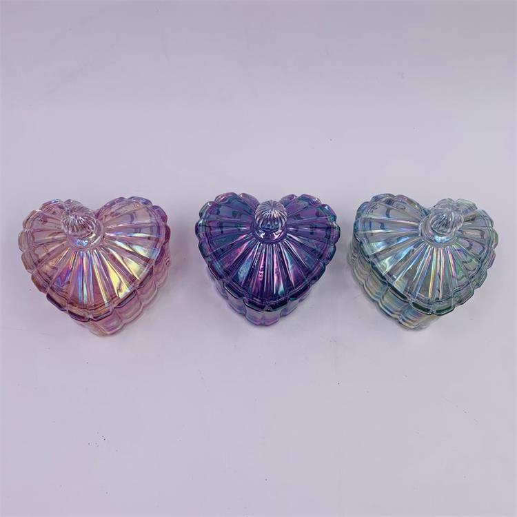 Description | Wholesale ion effect new color heart shaped glass candy jar with lid glass jars for candle making |