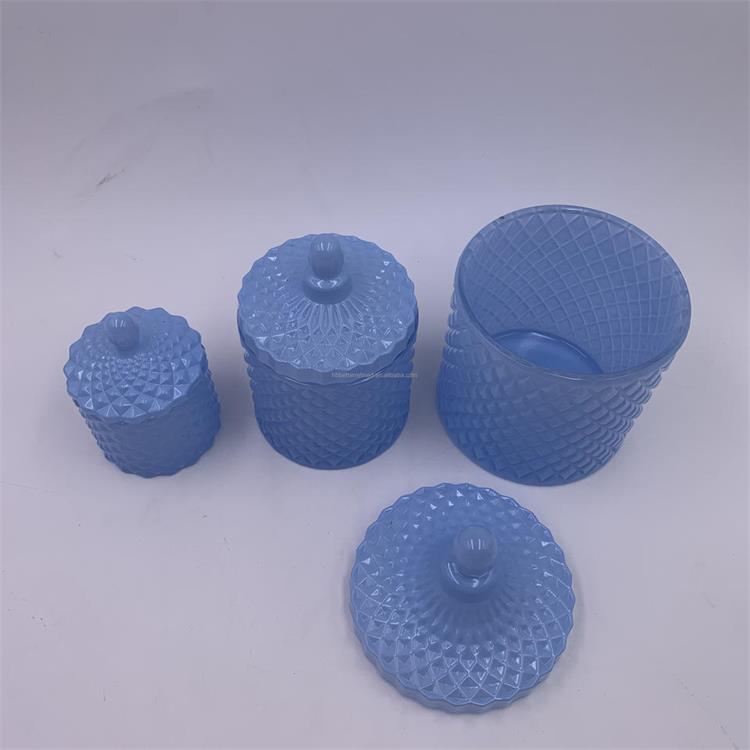 Description | Wholesale blue luxury glass candle jar with lid glass cookie jar wax cup soy container geo cut 8oz 12oz |