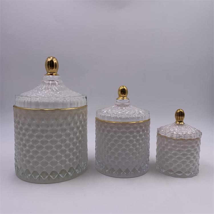 Description | Wholesale set of 3 geo cut baby glass candle jar with lid wax cup glass candy jar |