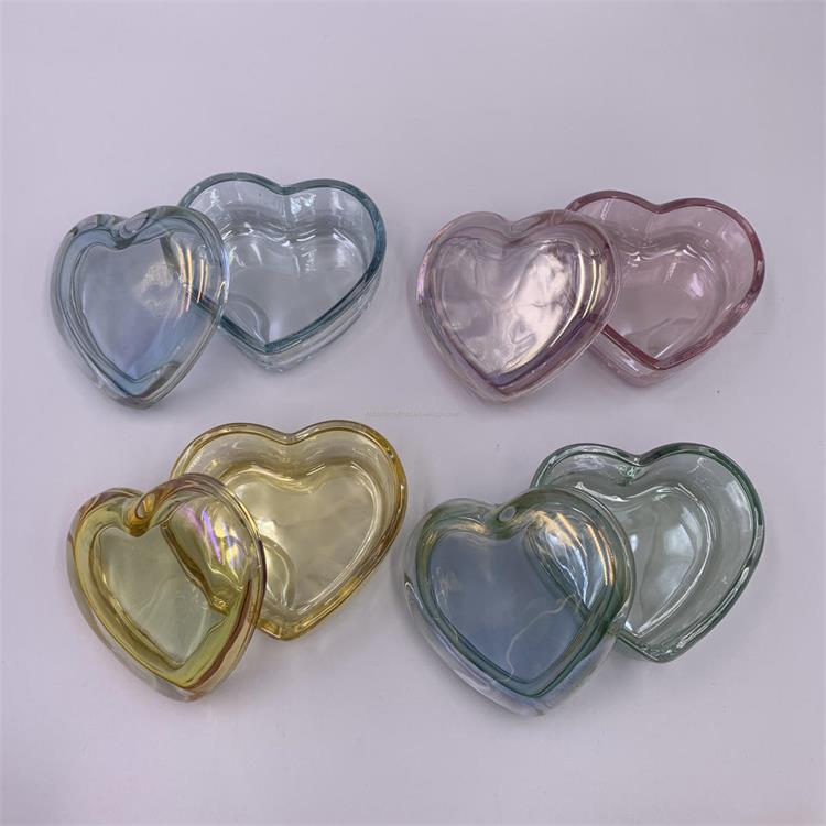 Description | Wholesale Valentine day gift empty decoration color heart shaped glass candy jar with lid little jewel box |