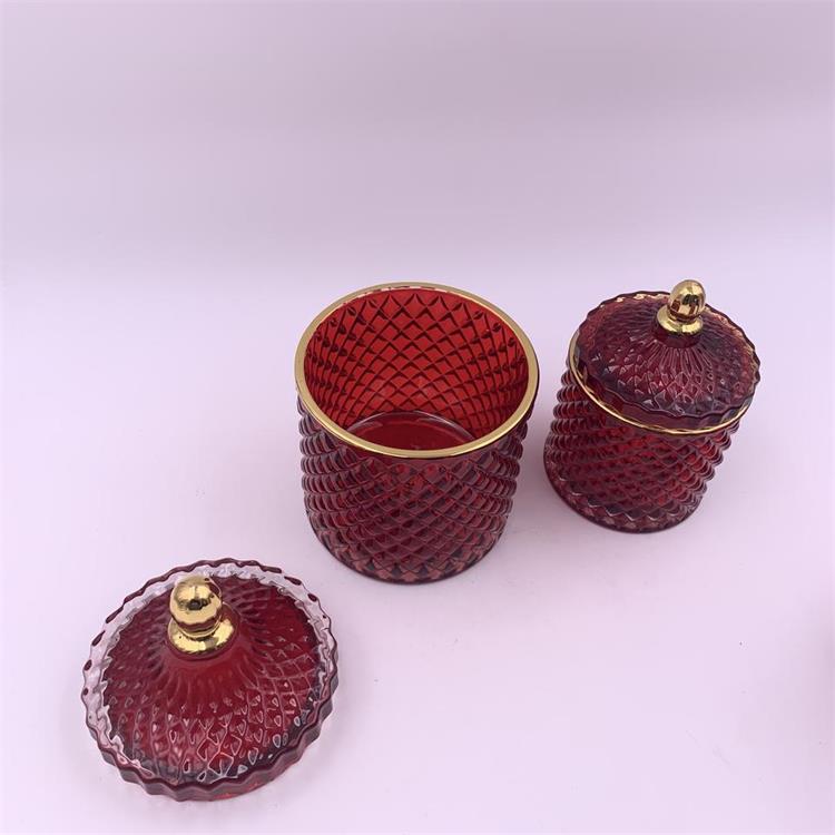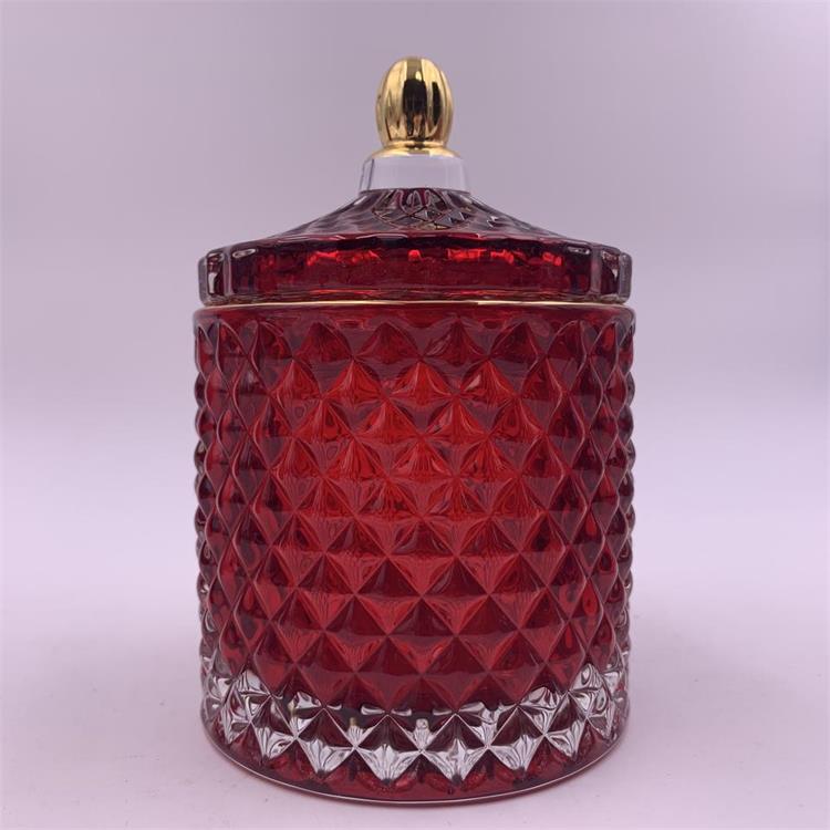Description | Small glass diamond red shaped jar for candle making with glass lid crystal glass candy jar with lid |