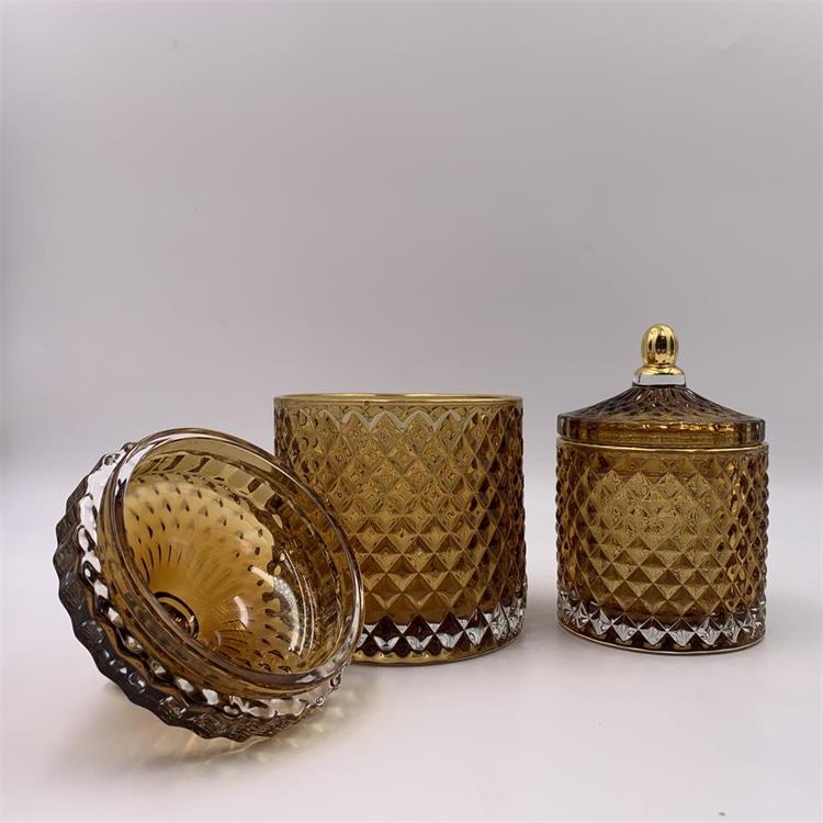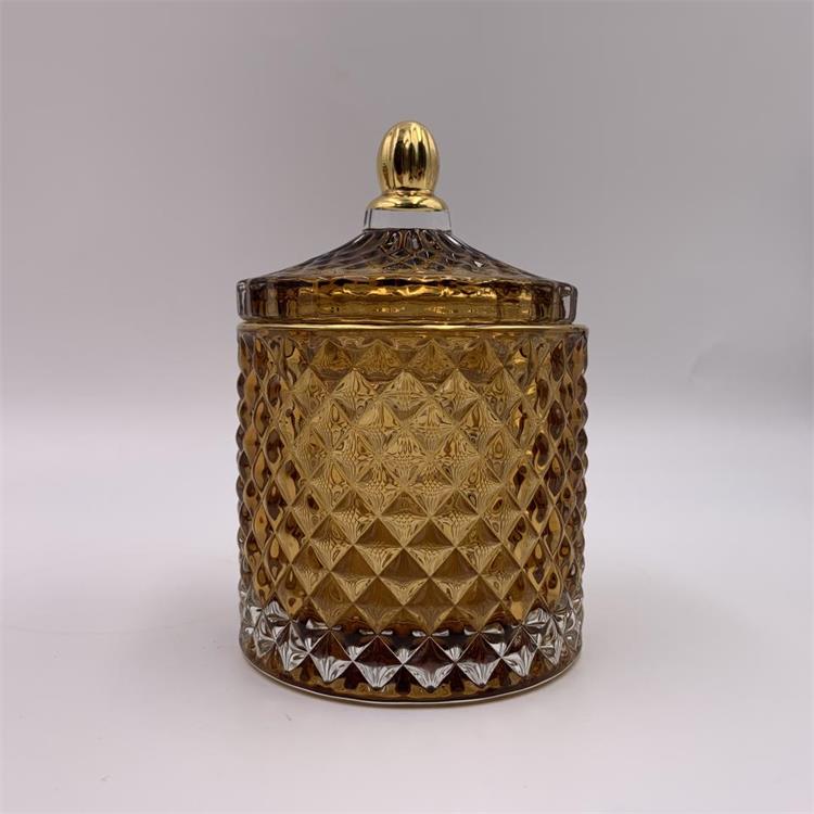 Description | Glass diamond geo cut amber shaped jar for candle making with glass lid crystal glass candy jar with lid wax container |