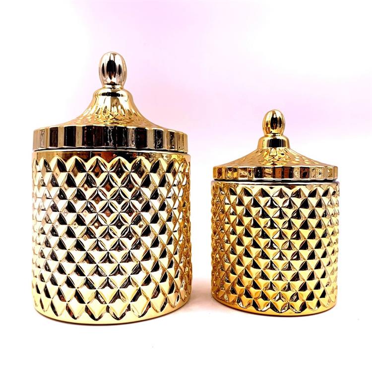 Description | Glass spring geo cut GOLD SILVER ROSE jar for candle making with glass lid crystal glass candy jar with lid wax container |