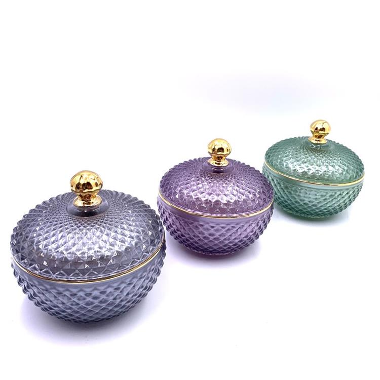 Description | Glass spring pink gray soy geo cut jar for candle making with glass lid crystal glass candy jar with lid wax container |