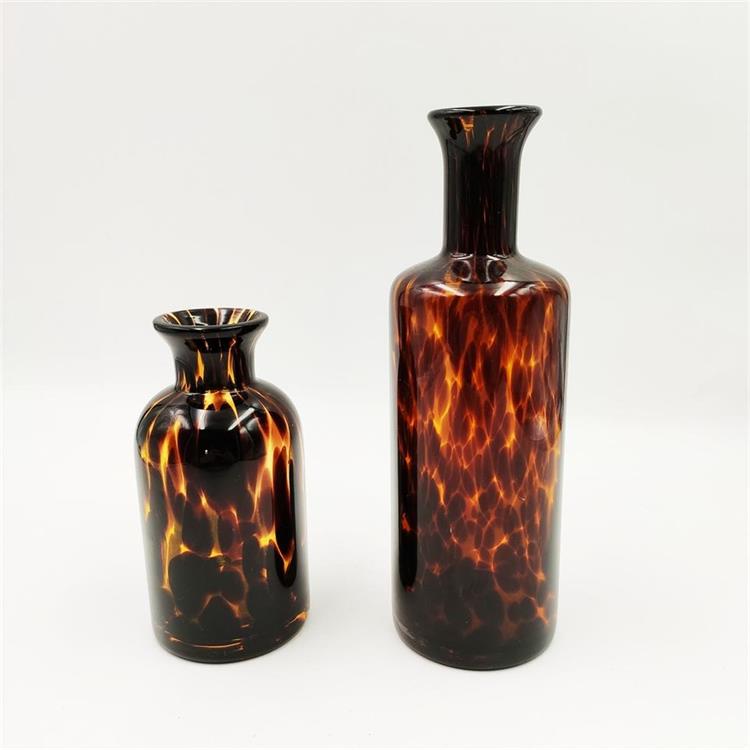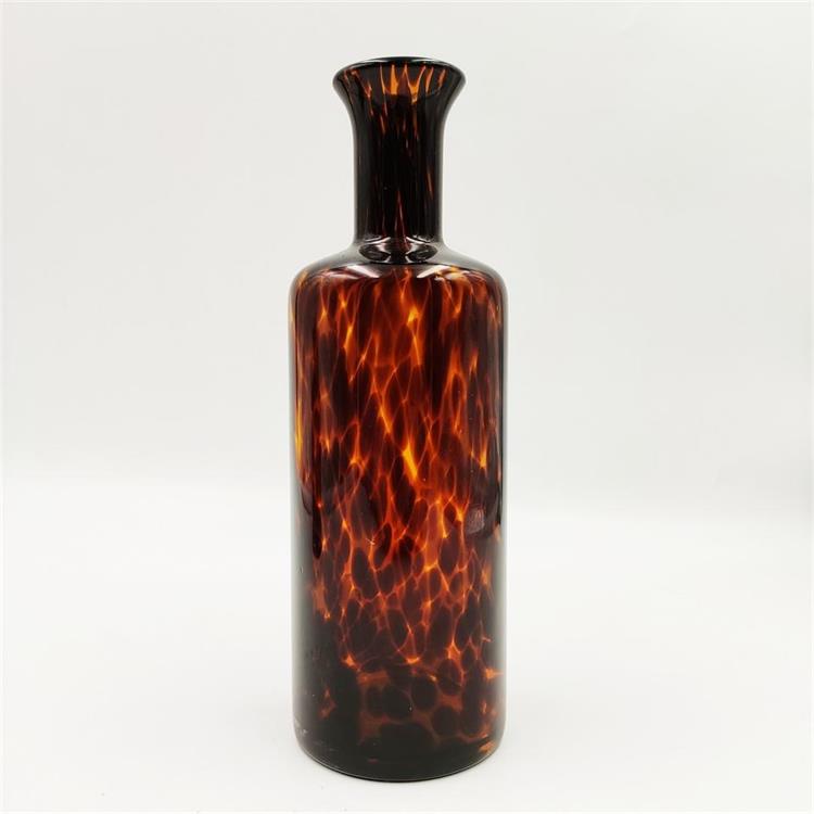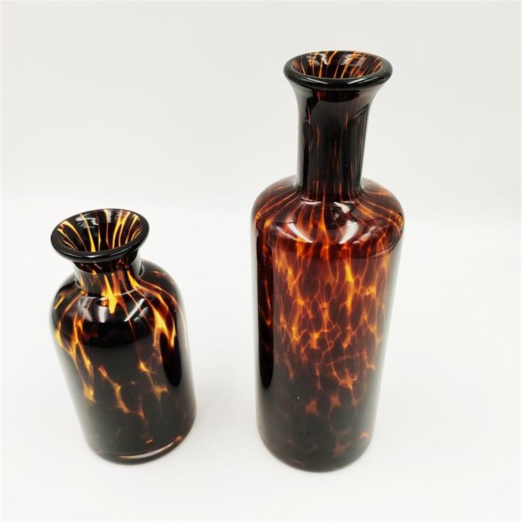 Description | Leopard pattern brown swirl glass taper shaped vase tabletop |
