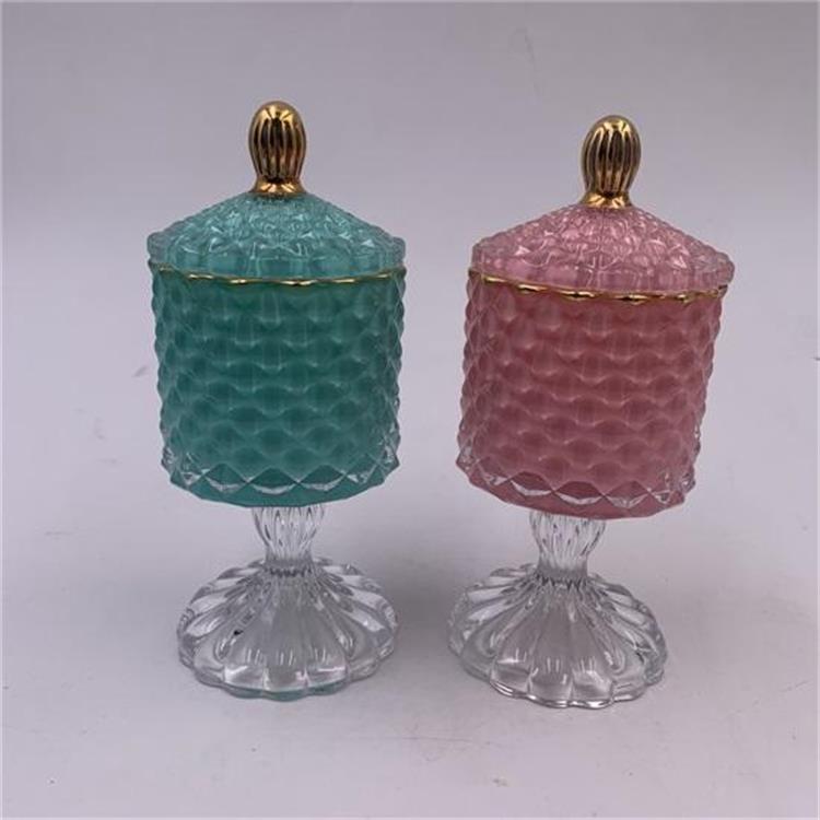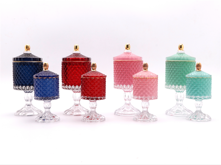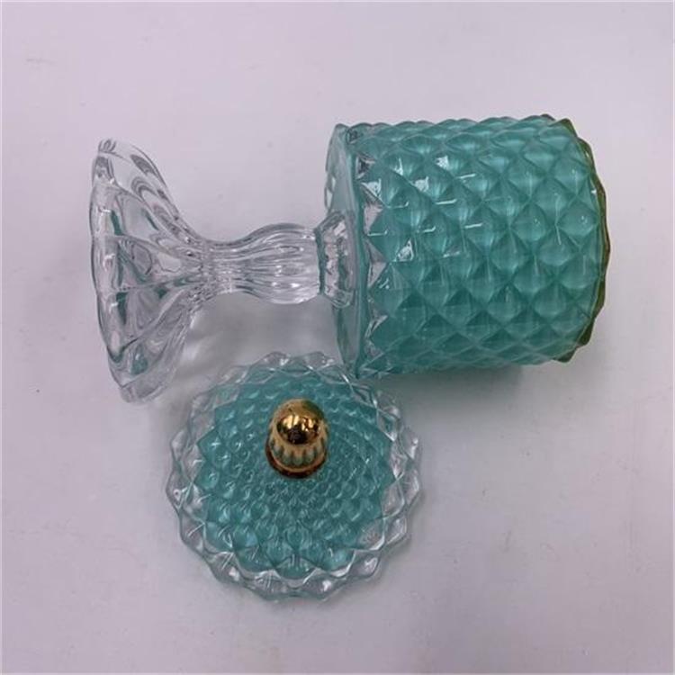 Description | Small glass diamond shaped GEO cut empty jar with base for candle making with glass lid crystal glass candy jar with lid |