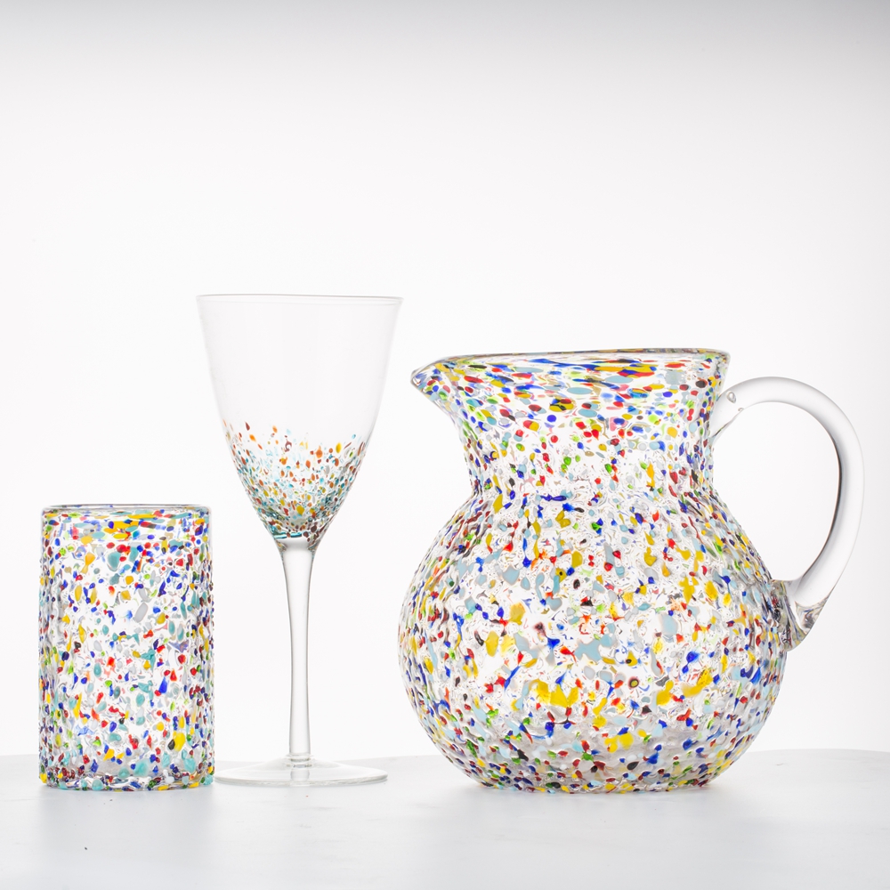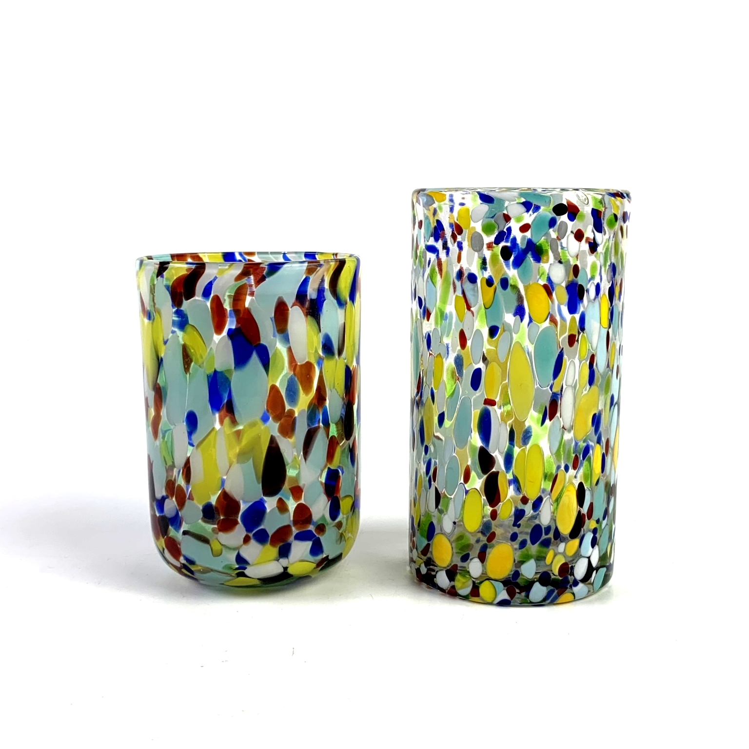 The colorful spots make cups beautiful and bring a unique drinking experince. Each is handcrafted and designed with color spots, forming unique patterns and optical effects. Soda-lime glass Food safe and Dishwasher safe.
