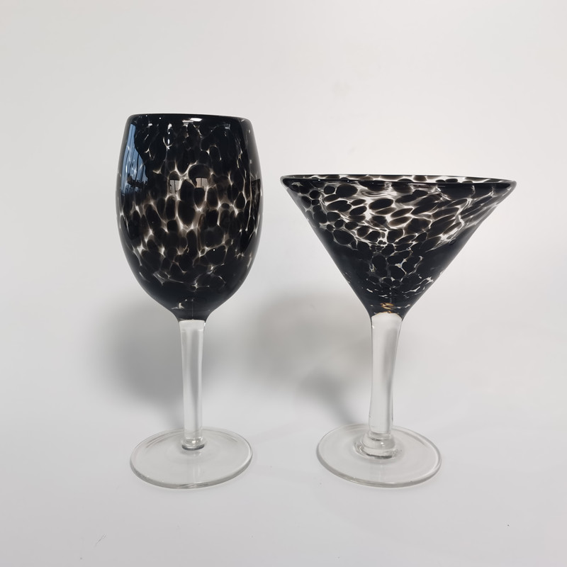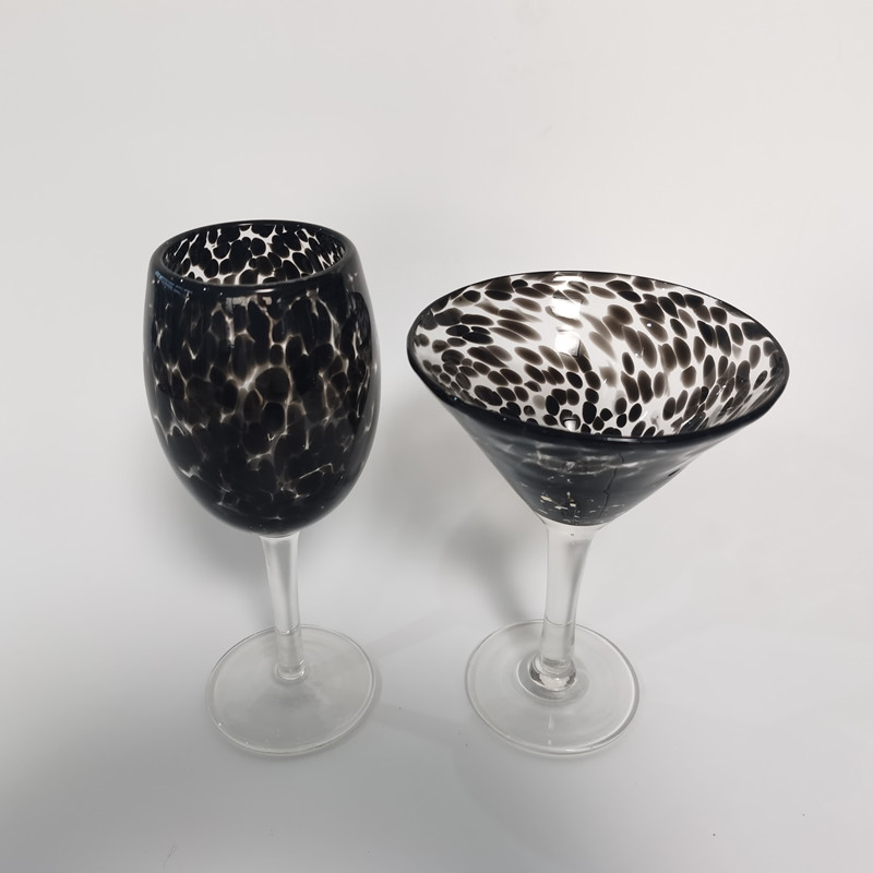 These glass tumblers/wine glasses are hand crafted. Solid color and dishwasher safe.