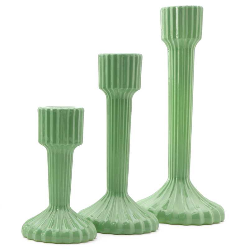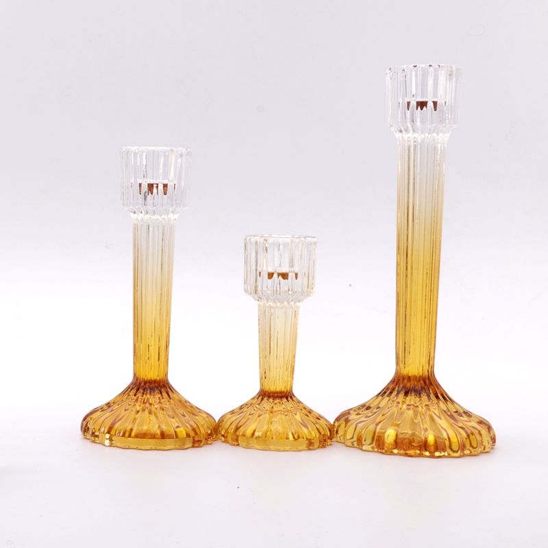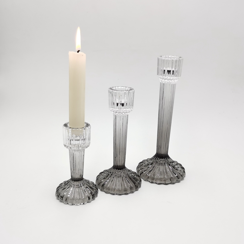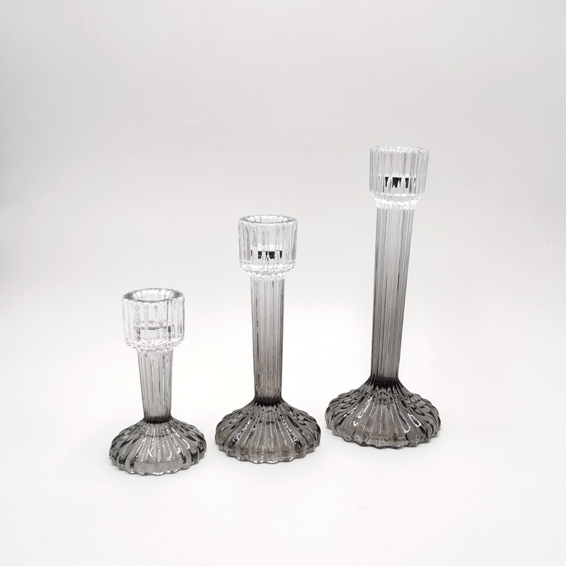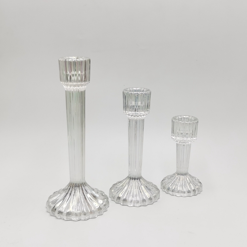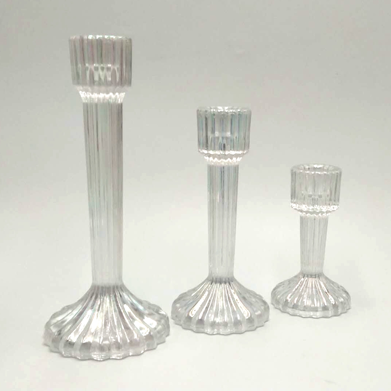 Description | Color Fluted Ribbed Taper Glass Candle Holder Set of 3 For Home Decoration |