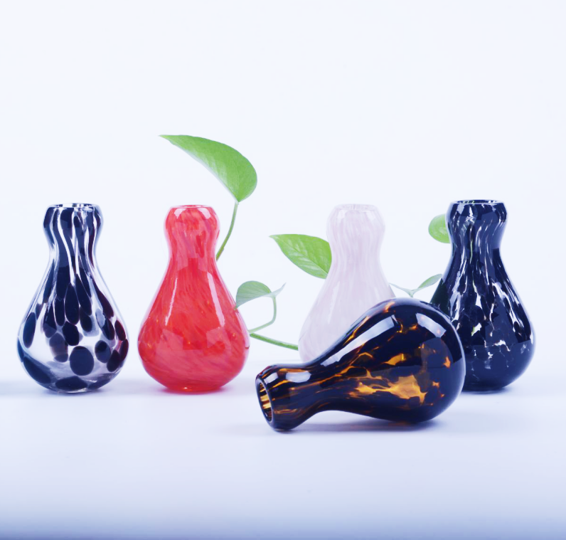 [Handmade]: The color of hand-blown vases will be slightly different. Handmade vases come with minuscule bubbles and rippled lines. The differences inherent in handcrafting make each vase unique. Not a machine painted color.